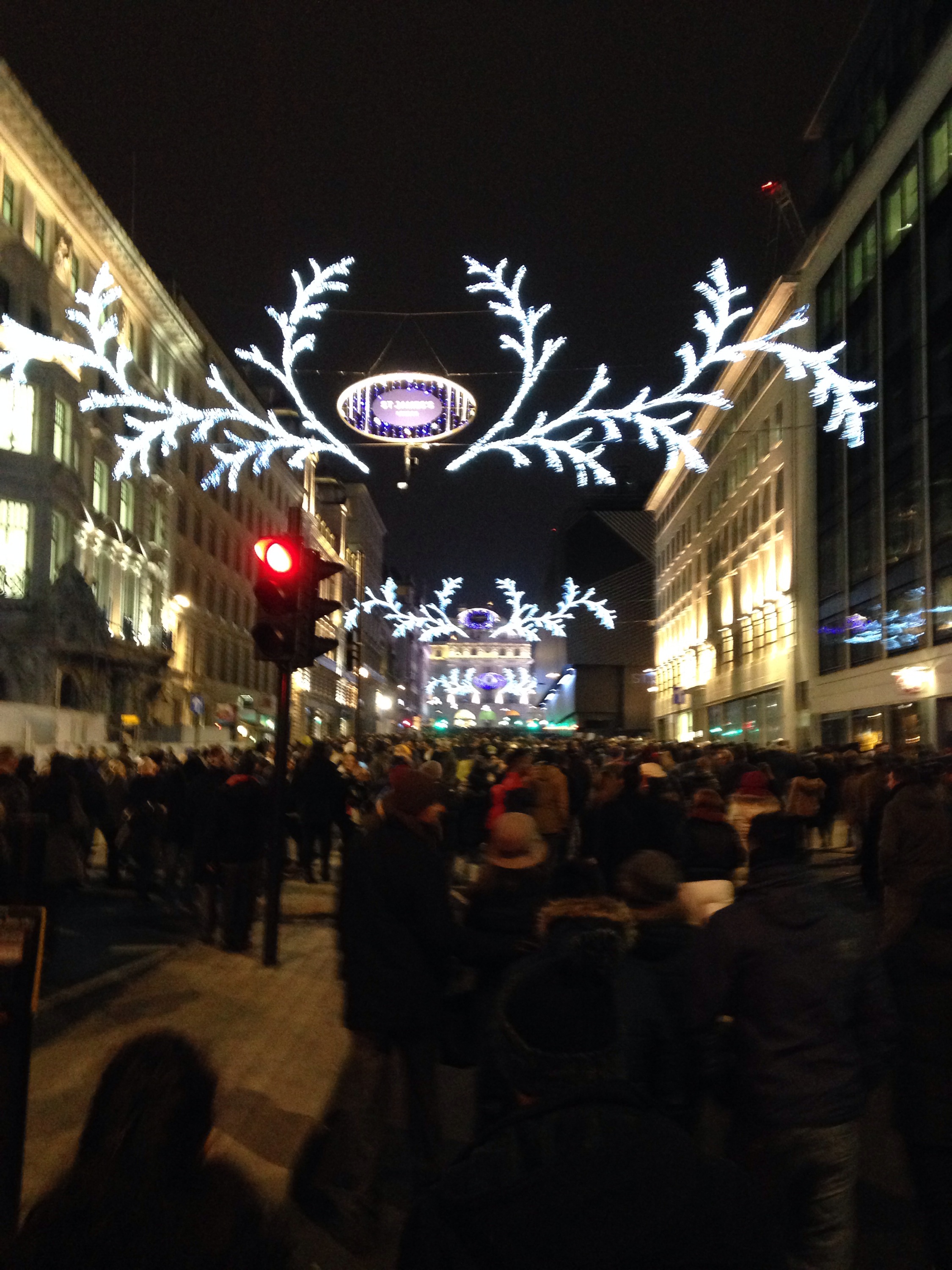 The tricky aspect of being in the middle of everything is getting out of everything. After the fireworks, we headed up to Piccadilly Circus and then to Green Park station. It was a rather festive walk- when else will you walk in the middle of typically super busy, high traffic streets with everyone else in town? From there, we took a 110% full train to Knightsbridge to meet friends at the Mandarin Oriental for a champagne toast.