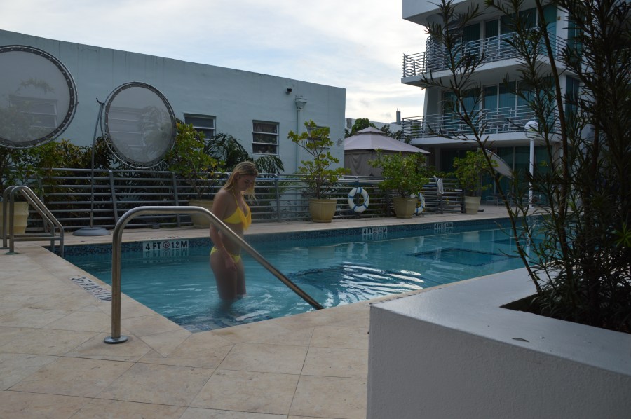 A view of the Z Ocean Hotel pool from a Pool Lanai Suite dining area.