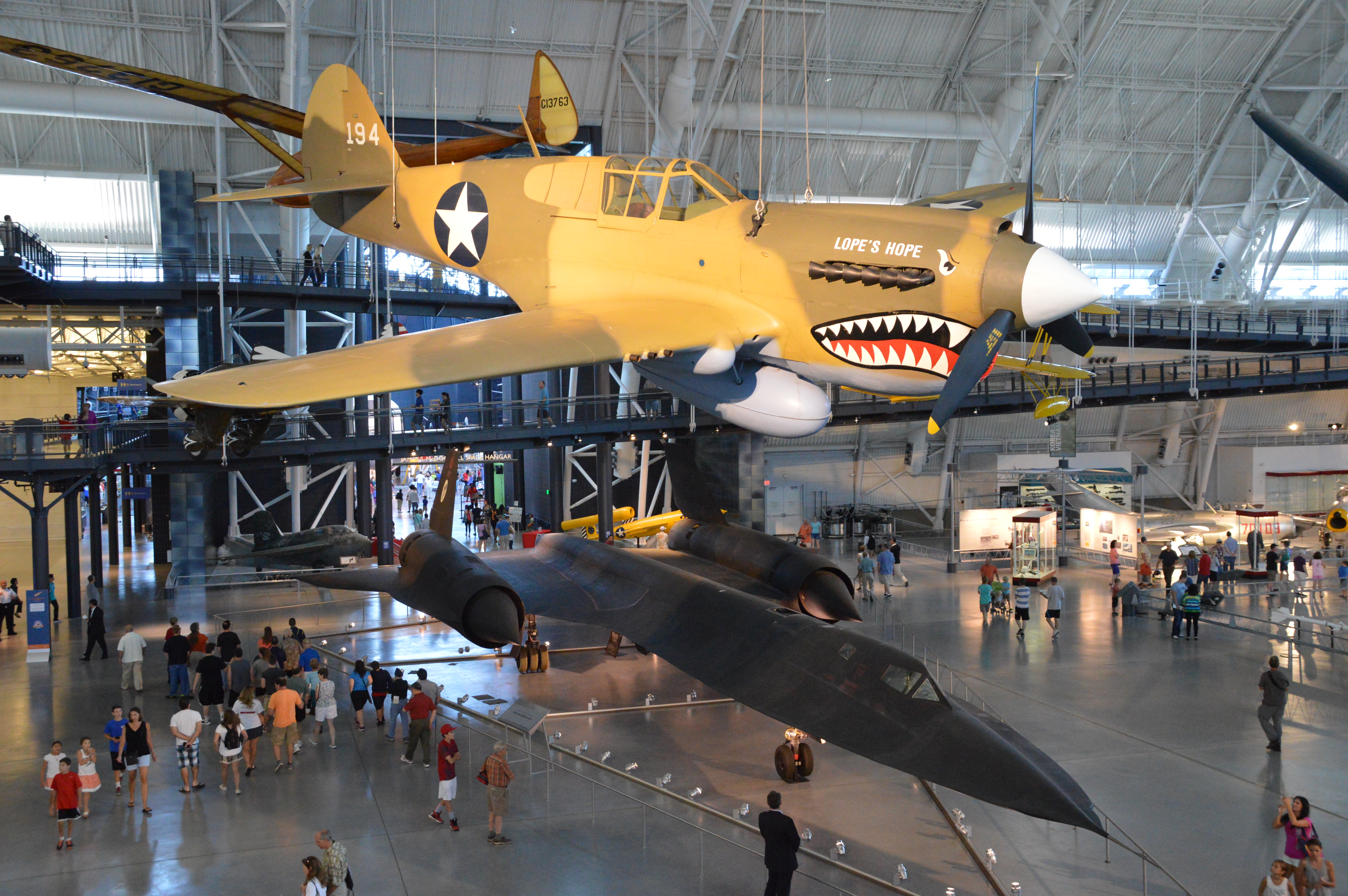 The museum consists of one main, massive hangar filled with planes, a second, space-themed hangar attached perpendicularly to the main hangar, a restoration hangar that you can observe, and a control tower.